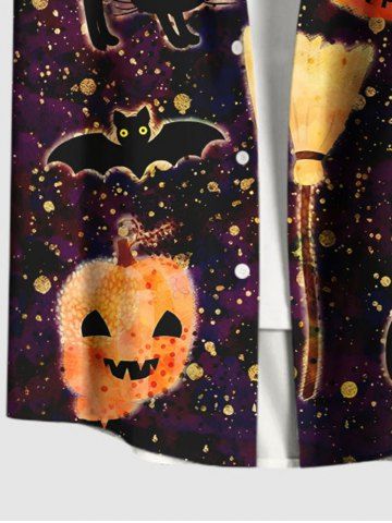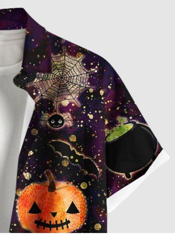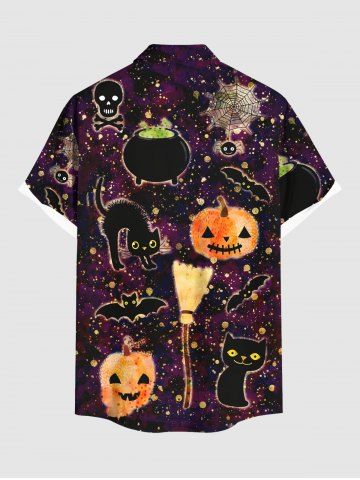 Plus Size Halloween Pumpkin Bat Spider Web Skull Cat Print Buttons Pocket Shirt For Men - Concord - S