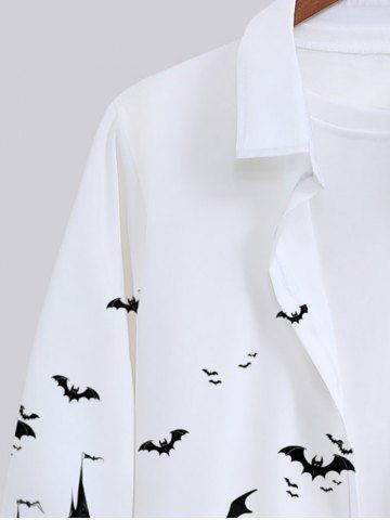 Plus Size Halloween Pumpkin Bat Tree Castle Print Buttons Long Sleeve Shirt For Men - White - 8xl
