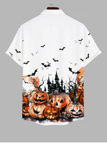 Plus Size Halloween Pumpkin Bat Tree Castle Print Buttons Pocket Shirt For Men - White - 3xl