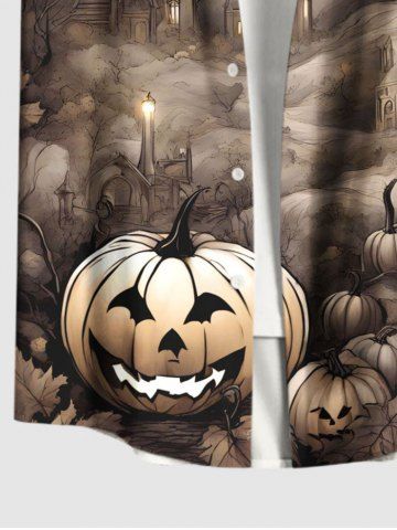 Plus Size Halloween Pumpkin Bat Tree Castle Print Buttons Pocket Shirt For Men - Light Brown - 2xl