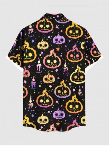 Plus Size Halloween Pumpkin Candles Star Print Buttons Pocket Shirt For Men - Black - 2xl
