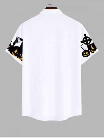 Plus Size Halloween Pumpkin Cross Skeleton Claw Print Buttons Pocket Shirt For Men - White - M