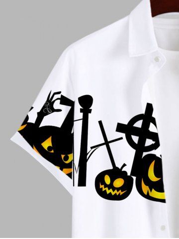 Plus Size Halloween Pumpkin Cross Skeleton Claw Print Buttons Pocket Shirt For Men - White - 2xl