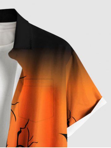 Men > Plus Size Halloween Pumpkin Cross Tree Colorblock Print Buttons Pocket Shirt For Men
