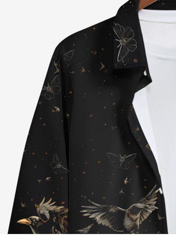 Plus Size Halloween Pumpkin Eagle Flowers Print Buttons Long Sleeve Shirt For Men - Black - 7xl
