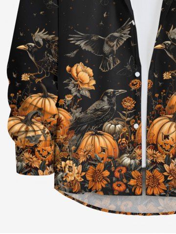 Men > Plus Size Halloween Pumpkin Eagle Flowers Print Buttons Long Sleeve Shirt For Men