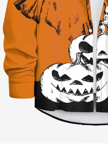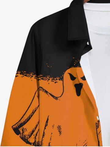 Plus Size Halloween Pumpkin Ghost Candles Bat Colorblock Print Buttons Shirt For Men - Orange - Xl