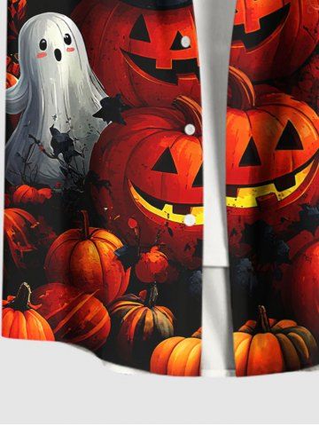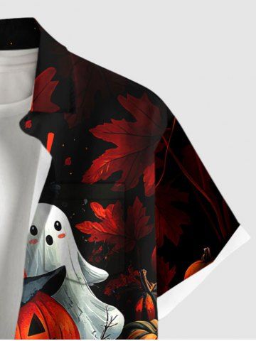 Men > Plus Size Halloween Pumpkin Ghost Maple Leaf Print Buttons Pocket Shirt For Men