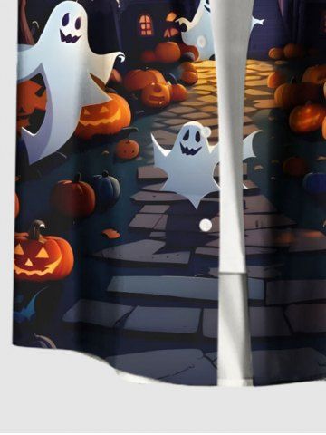 Men > Plus Size Halloween Pumpkin Ghost Moon Bat Tree Print Buttons Pocket Shirt For Men