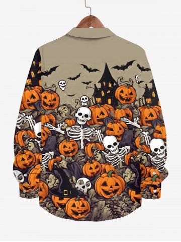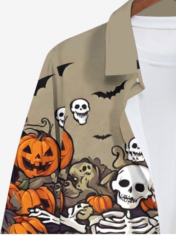 Men > Plus Size Halloween Pumpkin Ghost Skeleton Skulls Bat Print Buttons Long Sleeve Shirt For Men