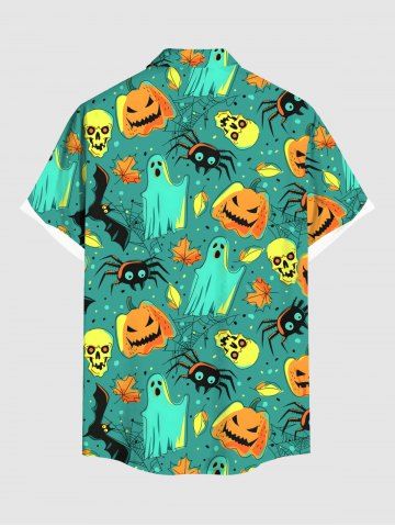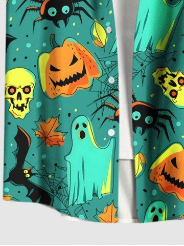Men > Plus Size Halloween Pumpkin Ghost Skulls Spider Bat Maple Leaf Print Buttons Pocket Shirt For Men