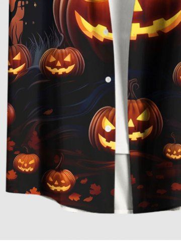 Men > Plus Size Halloween Pumpkin Lantern Bat Moon Castle Print Buttons Pocket Shirt For Men