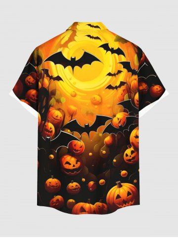 Plus Size Halloween Pumpkin Lantern Bat Print Buttons Pocket Shirt For Men - Orange - Xl