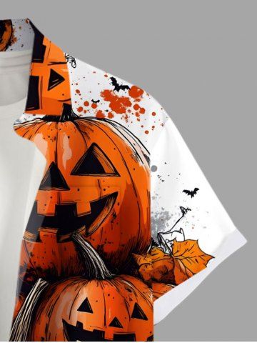 Plus Size Halloween Pumpkin Leaf Paint Splatter Print Buttons Pocket Shirt For Men - White - 4xl