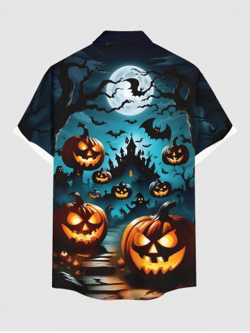Men > Plus Size Halloween Pumpkin Moon Bat Print Buttons Pocket Shirt For Men