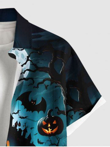 Plus Size Halloween Pumpkin Moon Bat Print Buttons Pocket Shirt For Men - Black - 5xl