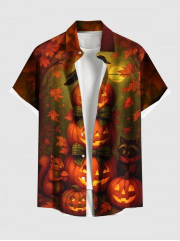 Men > Plus Size Halloween Pumpkin Moon Crow Bowknot Squirrel Raccoon Print Buttons Pocket Shirt For Men