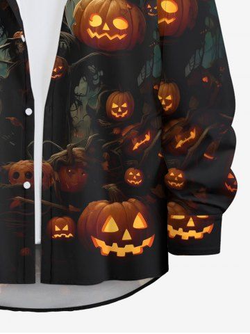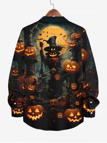 Men > Plus Size Halloween Pumpkin Moon Scarecrow Print Buttons Long Sleeve Shirt For Men