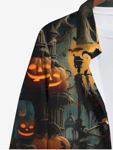 Plus Size Halloween Pumpkin Moon Scarecrow Print Buttons Long Sleeve Shirt For Men - Multi-a - 8xl
