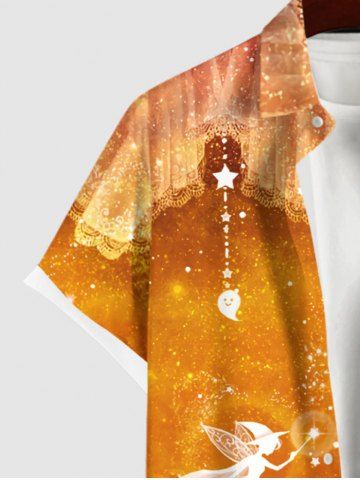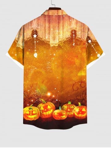 Men > Plus Size Halloween Pumpkin Moon Star Tassel Wizard Galaxy Glitter 3D Print Buttons Pocket Shirt For Men