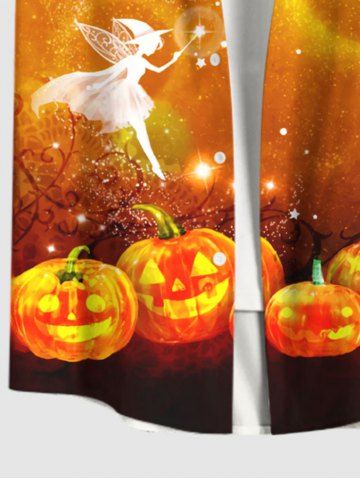Plus Size Halloween Pumpkin Moon Star Tassel Wizard Galaxy Glitter 3D Print Buttons Pocket Shirt For Men - Orange - Xl