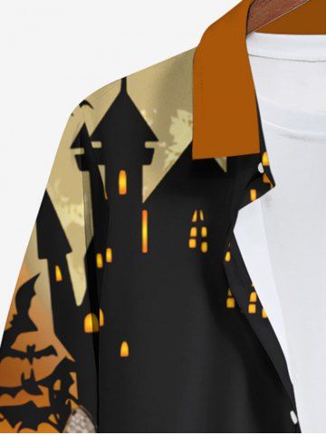 Plus Size Halloween Pumpkin Mummy Ghost Bat Print Buttons Long Sleeve Shirt For Men - Multi-a - 8xl