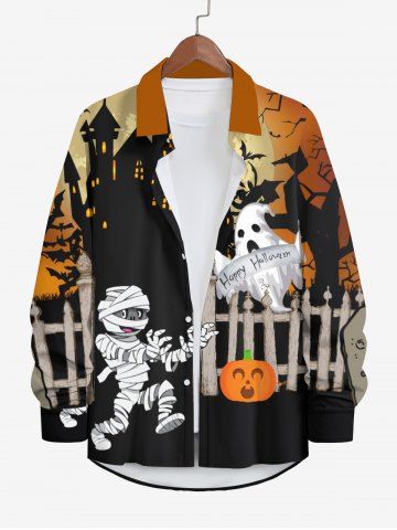 Men > Plus Size Halloween Pumpkin Mummy Ghost Bat Print Buttons Long Sleeve Shirt For Men