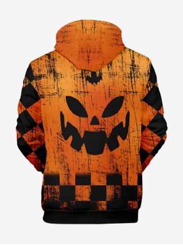 Plus Size Halloween Pumpkin Plaid Checkered Print Drawstring Pockets Hoodie For Men - Orange - M