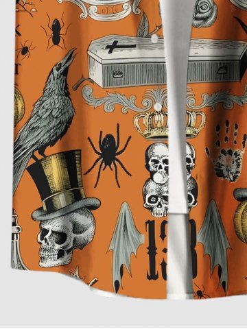 Men > Plus Size Halloween Pumpkin Skull Owl Spider Web Butterfly Clock Eagle Print Buttons Pocket Shirt For Men