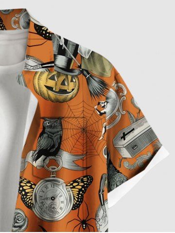 Men > Plus Size Halloween Pumpkin Skull Owl Spider Web Butterfly Clock Eagle Print Buttons Pocket Shirt For Men