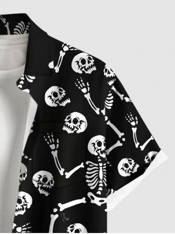 Plus Size Halloween Skeleton Skull Print Buttons Pocket Shirt For Men - Black - S