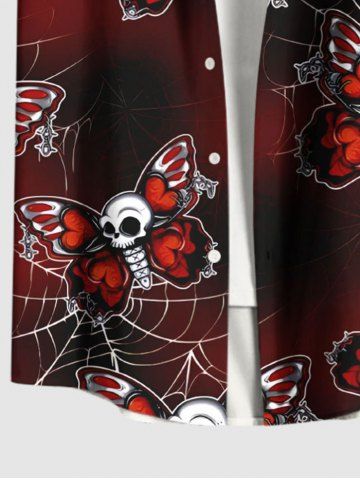 Plus Size Halloween Skull Butterfly Spider Web Print Buttons Pocket Shirt For Men - Red Wine - 2xl