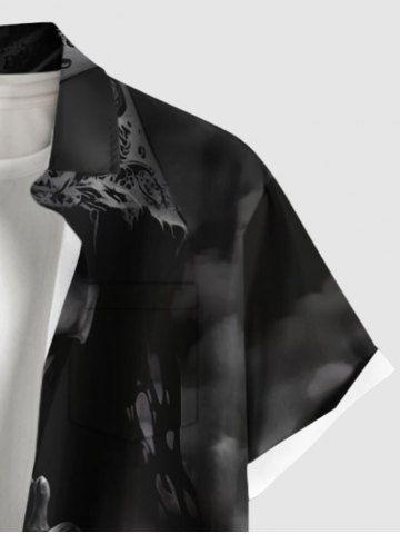 Plus Size Halloween Skull Cross Crow Print Buttons Pocket Shirt For Men - Black - Xl