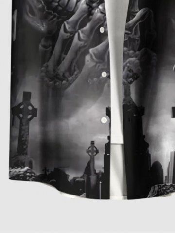 Plus Size Halloween Skull Cross Crow Print Buttons Pocket Shirt For Men - Black - 2xl