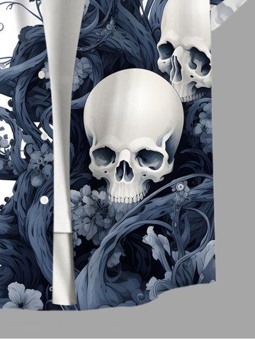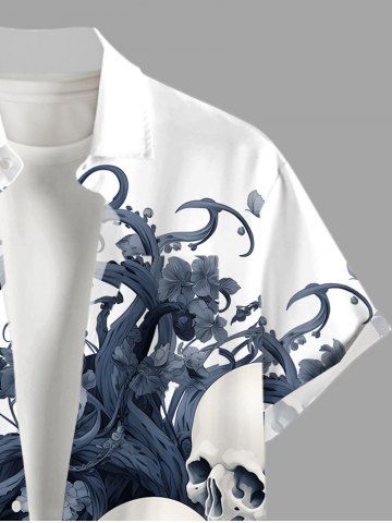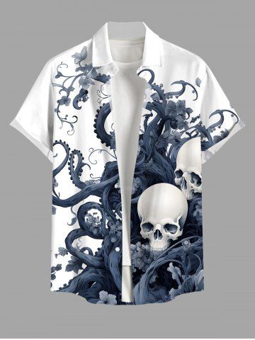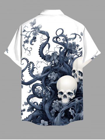 Plus Size Halloween Skull Octopus Flowers Print Buttons Pocket Shirt For Men - White - M