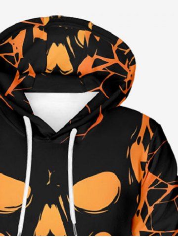 Plus Size Halloween Skull Spider Web Print Drawstring Pockets Hoodie - Black - 6xl