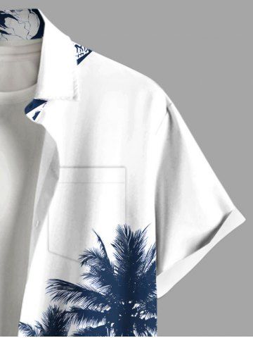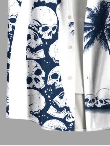 Plus Size Halloween Skulls Coconut Tree Print Buttons Pocket Shirt For Men - White - M
