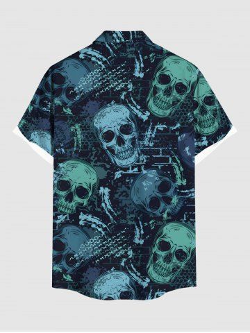 Plus Size Halloween Skulls Print Buttons Pocket Shirt For Men - Black - Xl