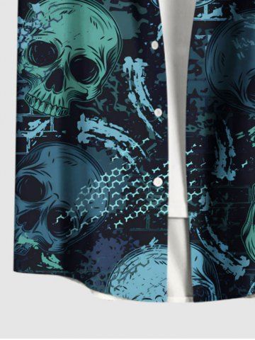 Plus Size Halloween Skulls Print Buttons Pocket Shirt For Men - Black - 6xl