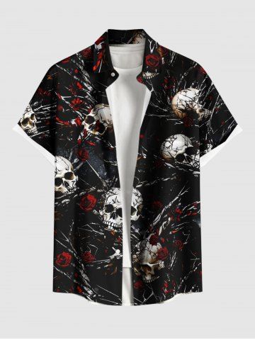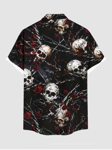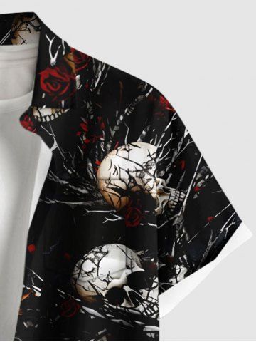 Plus Size Halloween Skulls Rose Flowers Chains Print Buttons Pocket Shirt For Men - Black - 6xl