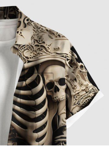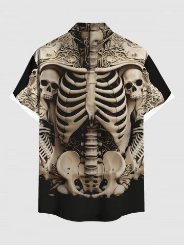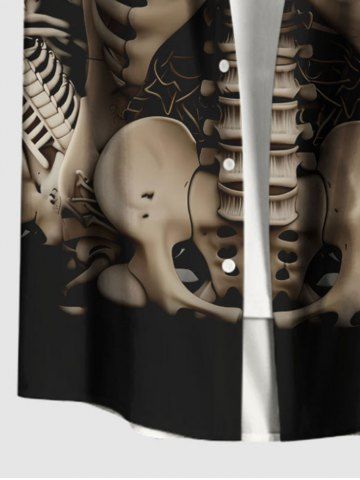 Plus Size Halloween Skulls Skeleton Print Buttons Pocket Shirt For Men - Black - 3xl