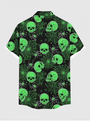 Plus Size Halloween Skulls Spider Web Star Print Buttons Pocket Shirt For Men - Black - M