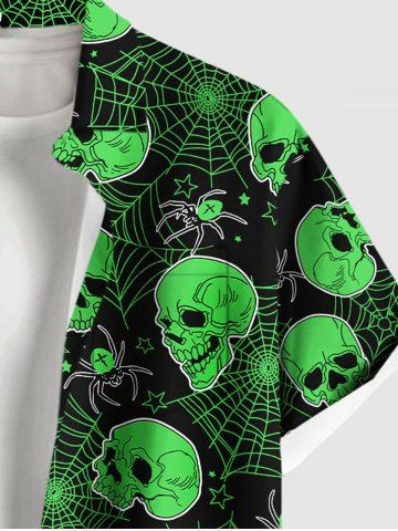 Men > Plus Size Halloween Skulls Spider Web Star Print Buttons Pocket Shirt For Men