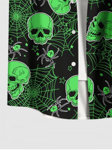 Plus Size Halloween Skulls Spider Web Star Print Buttons Pocket Shirt For Men - Black - 6xl