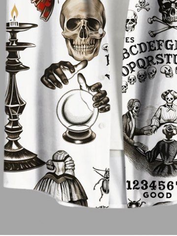Plus Size Halloween Spider Web Skulls Butterfly Cat Maple Leaf Print Buttons Pocket Shirt For Men - White - L