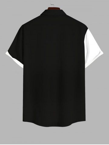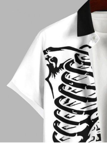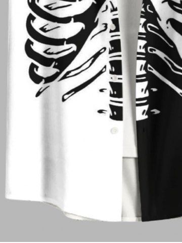 Plus Size Halloween Two Tone Skeleton Print Buttons Pocket Shirt For Men - Black - Xl