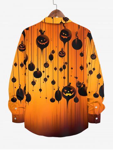 Men > Plus Size Ink Painting Pumpkin Ombre Light Beam Print Halloween Button Shirt For Men
