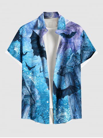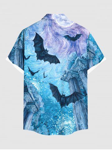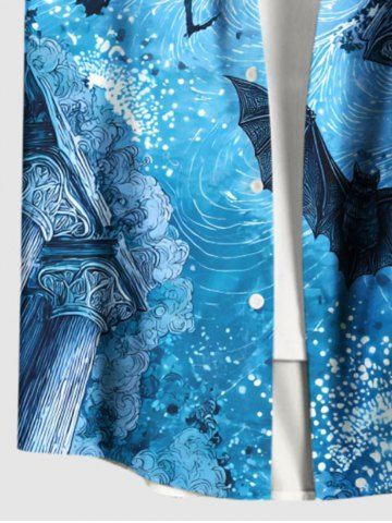 Plus Size Medieval Retro Style Bat Pillar Moon Underwater Vortex Print Halloween Button Pocket Shirt For Men - Sky Blue - Xl