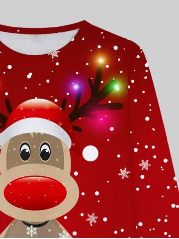 Plus Size Men's Christmas Elk Snowflake Colorblock Print Long Sleeves T-shirt - Red - L