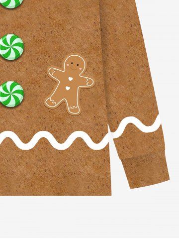 Plus Size Men's Christmas Gingerbread Candy Bowknot Print Long Sleeves T-shirt - Brown - Xl